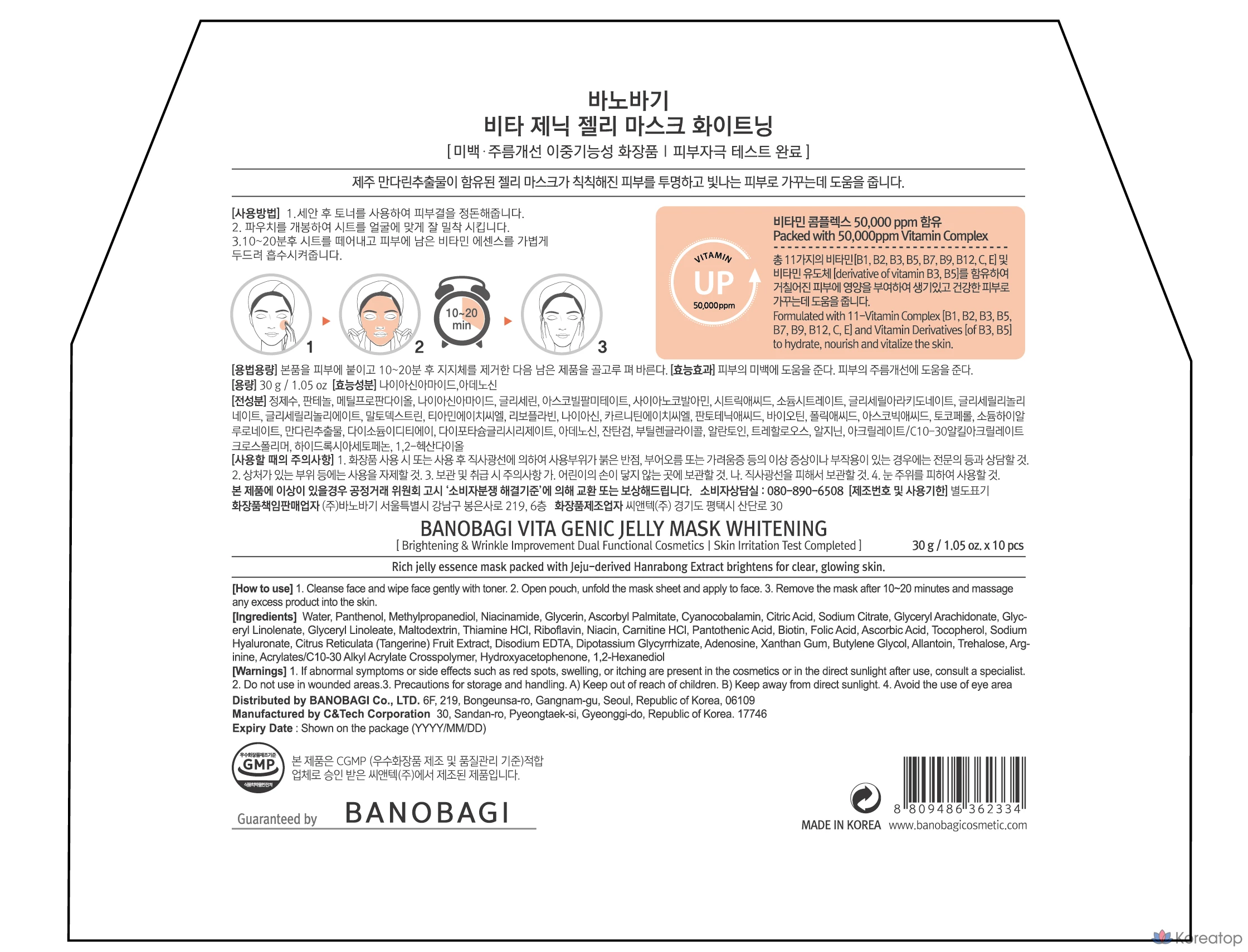 Тканевая маска для лица Banobagi Vitagenic Jelly Mask Whitening, 10 шт.