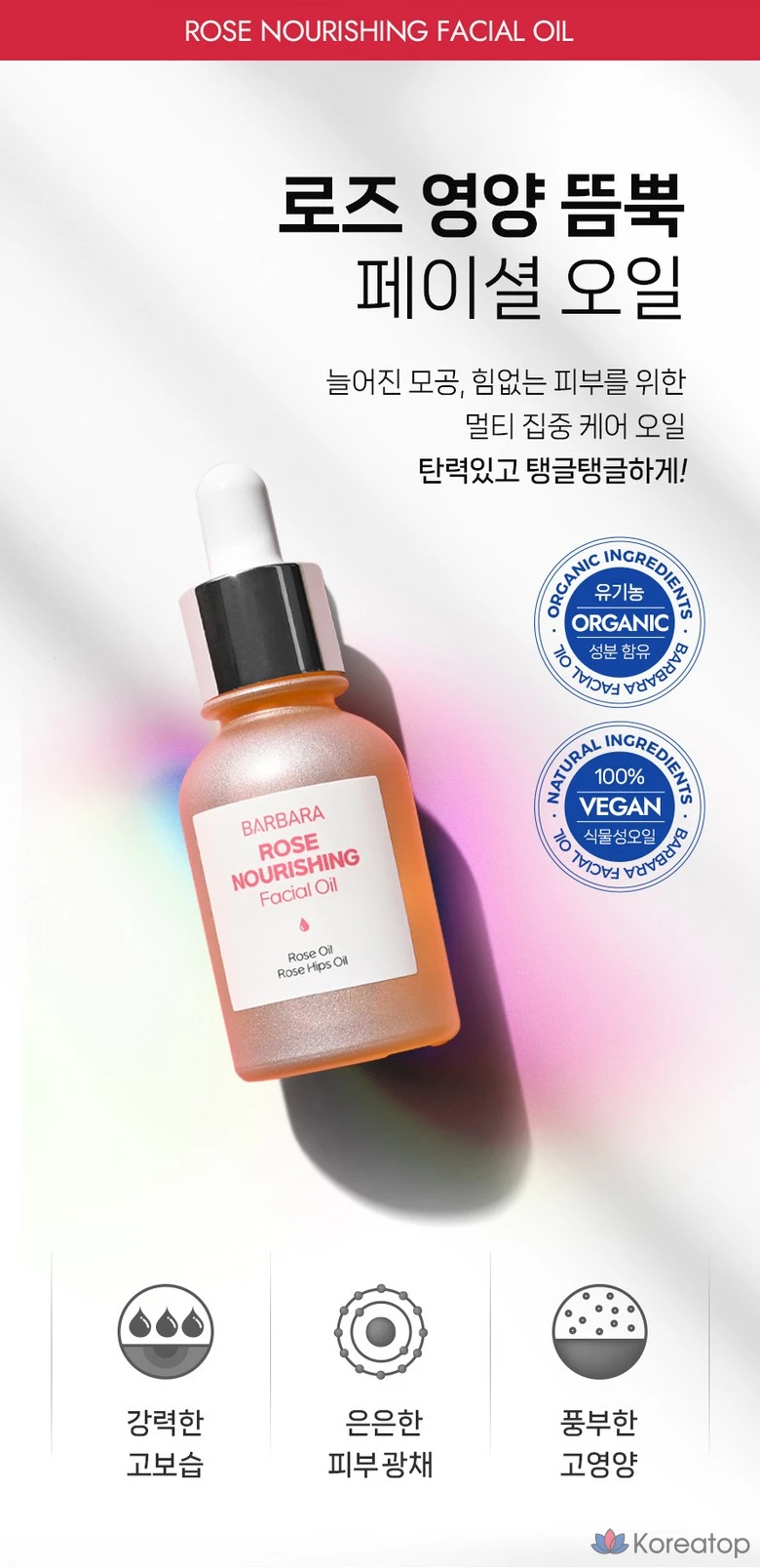 Питательное масло для лица Barbara Rose создано для глубокого увлажнения и питания кожи. Его натуральный состав, обогащенный экстрактом розы, обеспечивает мягкость и сияние. Масло легко наносится и быстро впитывается, не оставляя жирного блеска. Идеально подходит для ежедневного ухода, особенно в холодное время года, когда кожа нуждается в дополнительной защите и увлажнении. Насладитесь нежным ароматом розы и почувствуйте, как ваша кожа становится более упругой и здоровой 🌹.