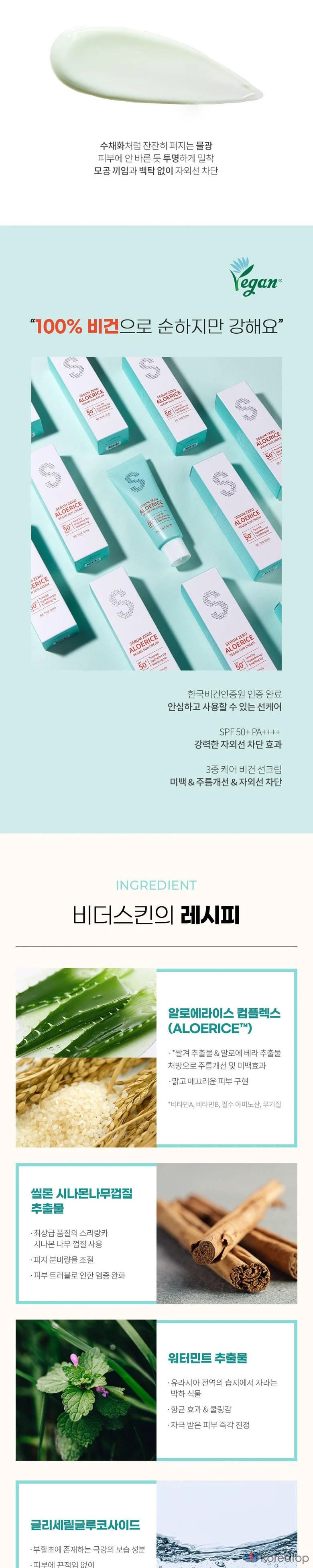 Солнцезащитный крем Be The Skin Sebum Zero с алоэ вера и рисом, веганский, SPF 50+ PA++++, 50 мл, 1 шт