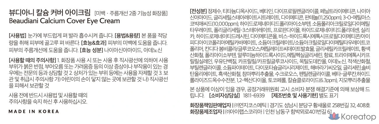 Крем для глаз Beaudiani Calcium Dark Circle Cover, 15 мл, 1 шт.