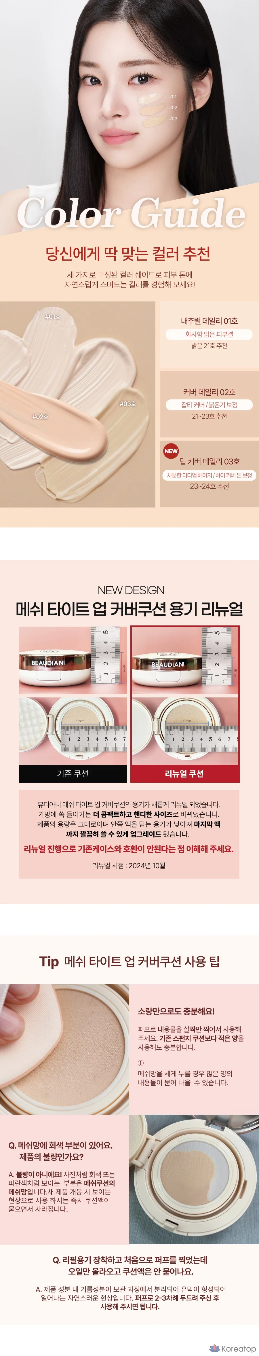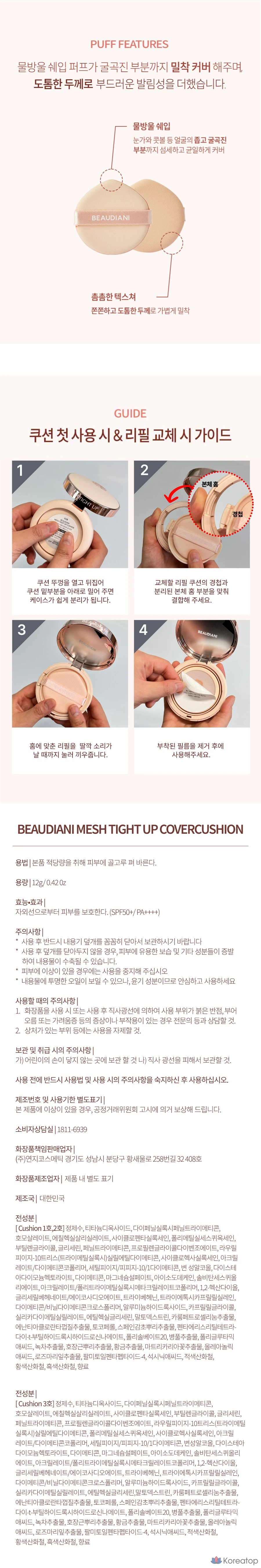 Набор тональных кремов Beaudiani Mesh Tight Up Cover Cushion (12 г) + сменный блок (12 г), натуральный, № 1, 1 комплект.