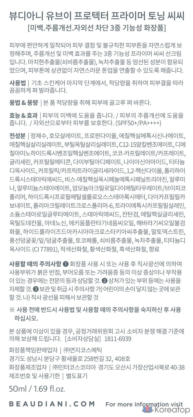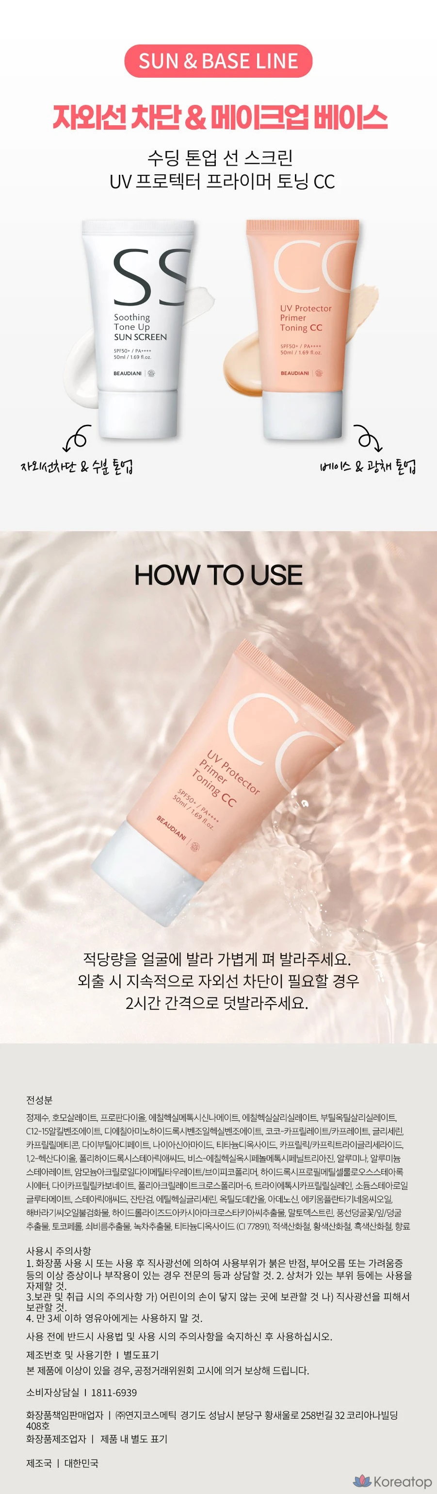 Тонирующий CC крем Beaudiani с высокой степенью защиты от UV-лучей обеспечивает надежную защиту вашей кожи от вредного воздействия солнца. Благодаря SPF50+ и PA++++, он эффективно блокирует ультрафиолетовые лучи, предотвращая преждевременное старение кожи. Крем обладает легкой текстурой, которая равномерно распределяется по коже, создавая естественный тон и скрывая несовершенства. Натуральные компоненты в составе увлажняют и питают кожу, делая её мягкой и сияющей. Идеально подходит для ежедневного использования, обеспечивая комфорт и защиту в течение всего дня. ☀️