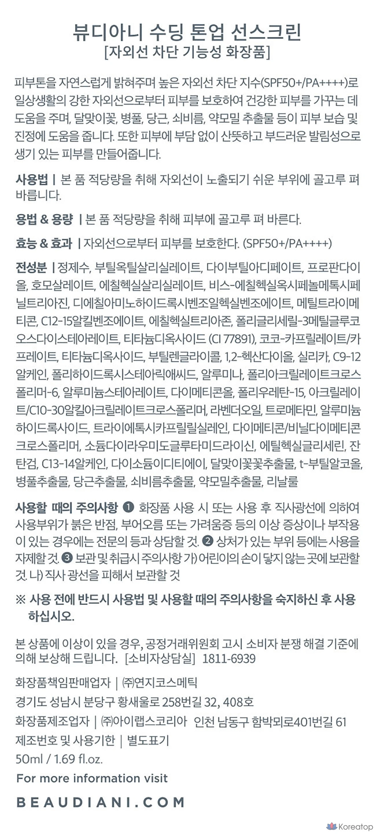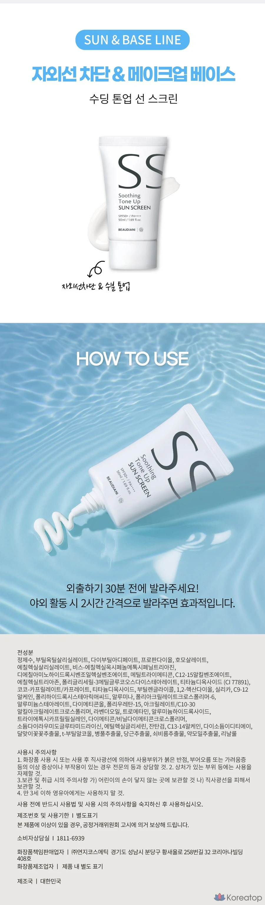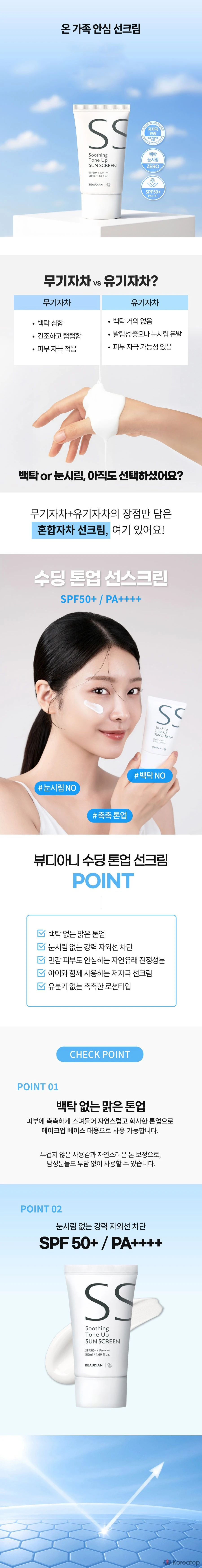 Успокаивающий солнцезащитный крем Beaudiani Soothing Tone-Up Sunscreen SPF50+ PA++++, 50 мл, 1 шт.