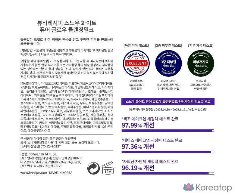 Очищающее молочко Beauty Recipe Snow White Pure Glow, 1 шт., 300 мл