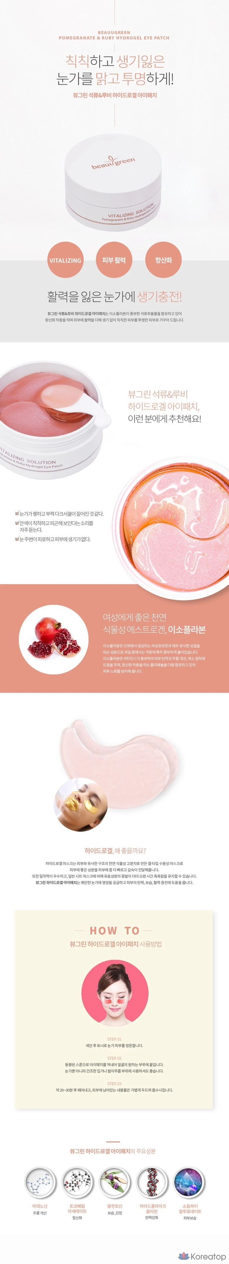 Гидрогелевые патчи для глаз Beauugreen «Гранат Руби», 60 листов/1 шт., от морщин вокруг глаз, 1 шт.