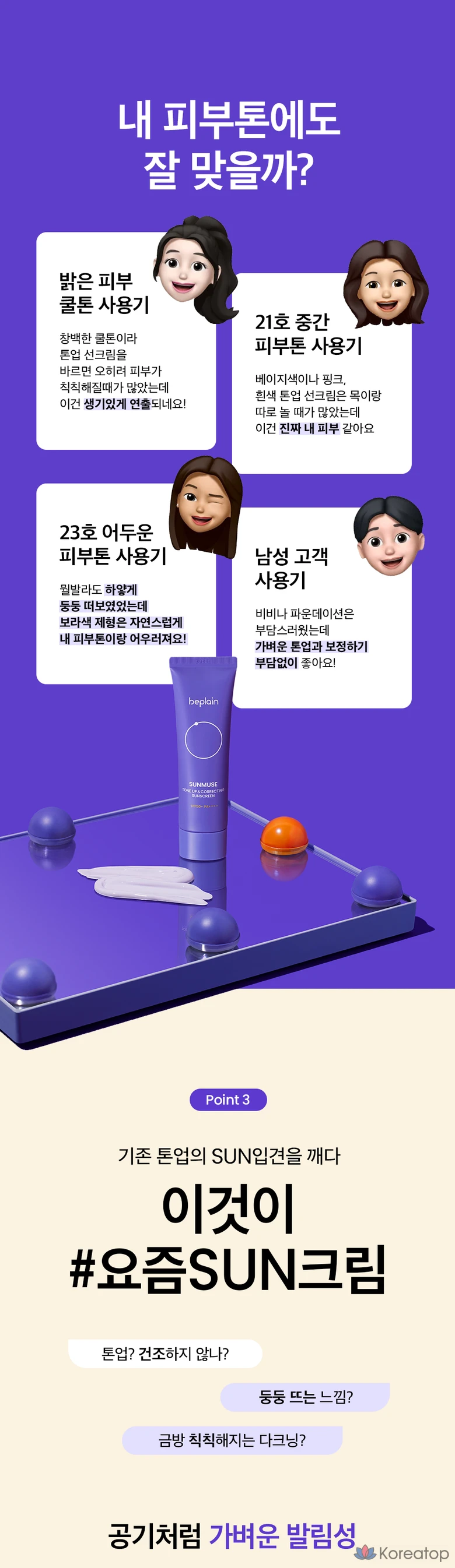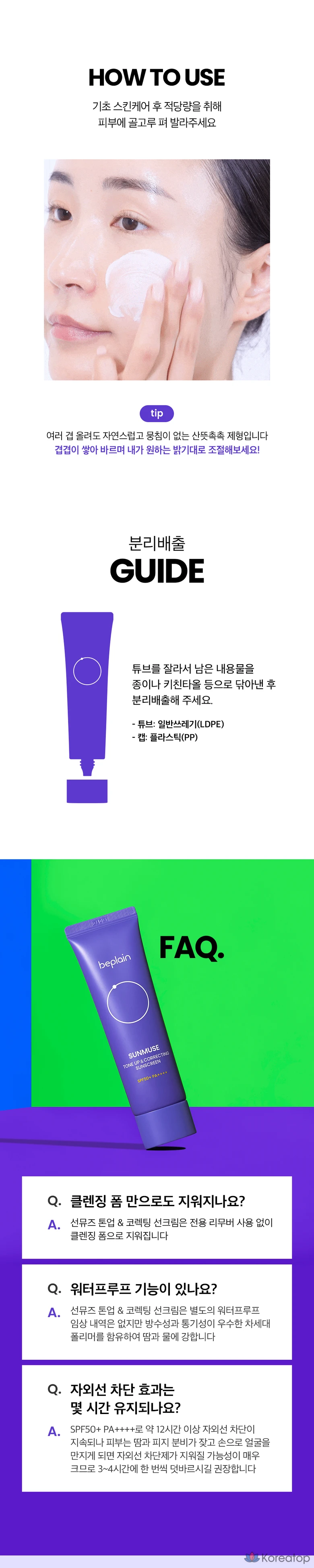 Солнцезащитный крем Beplain Sunmuse Tone-Up & Correcting, 50 мл, 1 шт.
