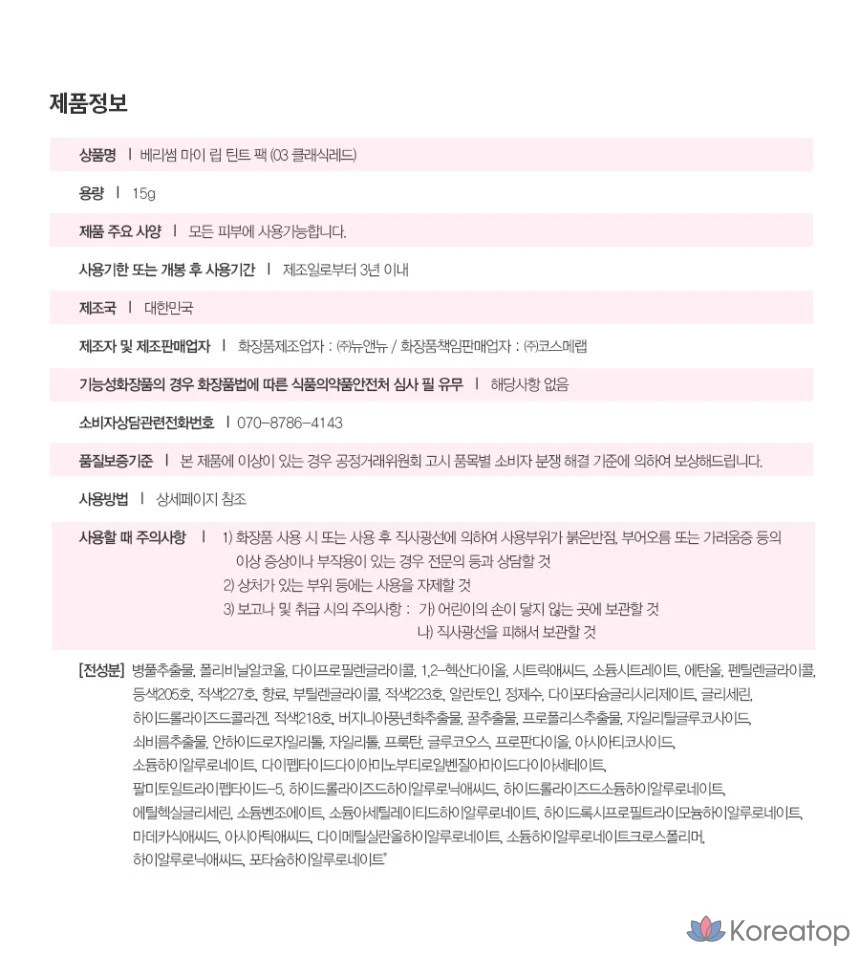 Набор тинтов для губ Berrisom My Lip Tint Pack, 03 Классический красный, 15 г, 1 шт.