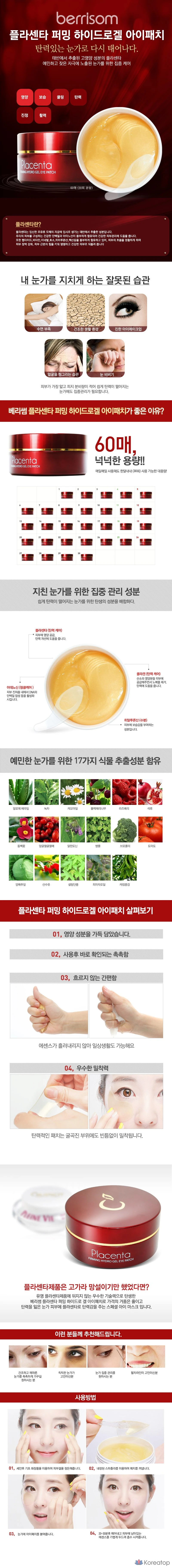 Укрепляющие гидрогелевые патчи для глаз с экстрактом плаценты Berrisom, 1 упаковка, 1 шт.