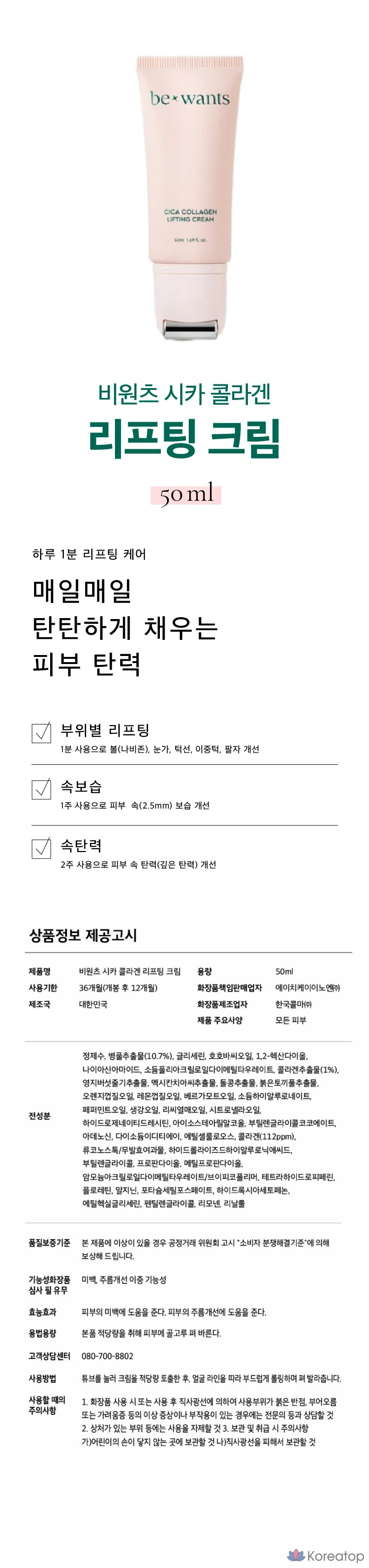 Be-Wants Cica Collagen Lifting Cream, 50 г, 1 шт., 50 мл