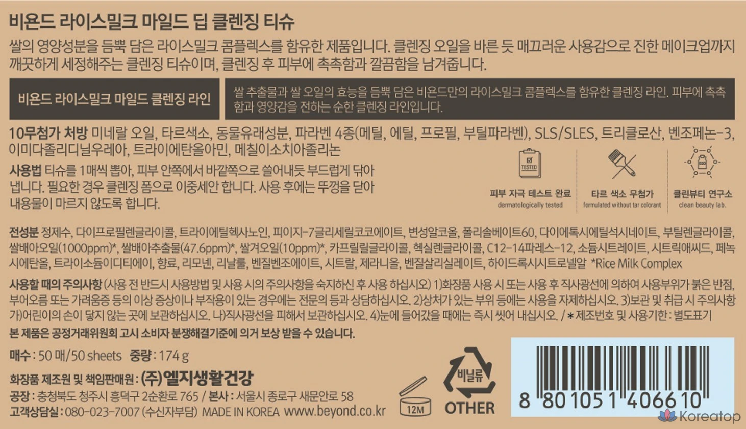 Салфетки BEYOND Rice Milk Mild для глубокого очищения, 50 листов, 1 упаковка.