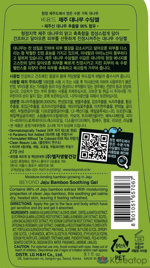 Успокаивающий гель BEYOND Jeju Bamboo, 270 мл, 1 шт.