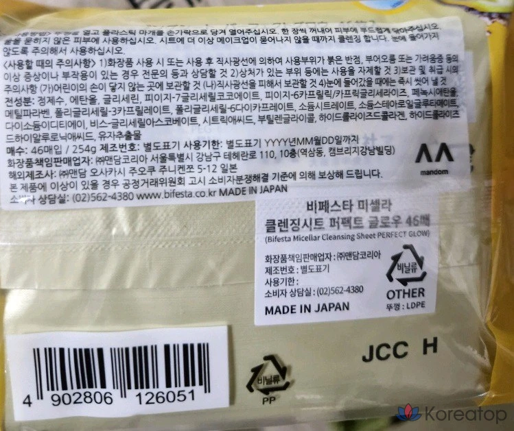 Очищающие мицеллярные салфетки Bifesta Perfect Glow, 46 салфеток, 1 упаковка