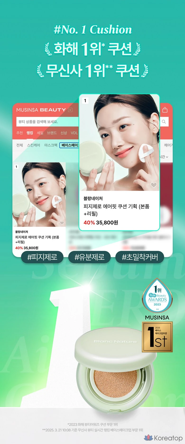 Blanc Nature Fiji Zero Airfit Cushion 15 г + сменный блок + набор спонжей, 19N Ваниль, 1 шт.