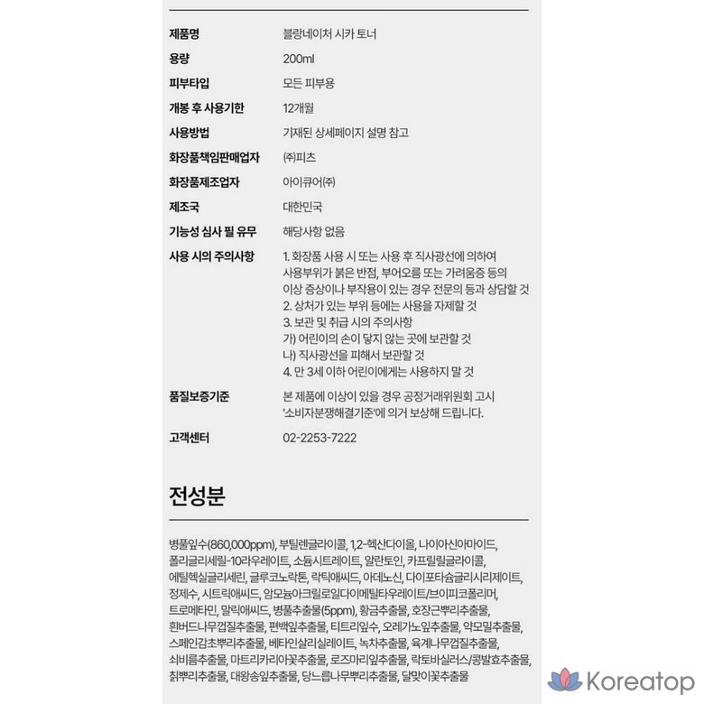 Тоник для лица Blanc Nature Cica, 200 мл, 1 шт.