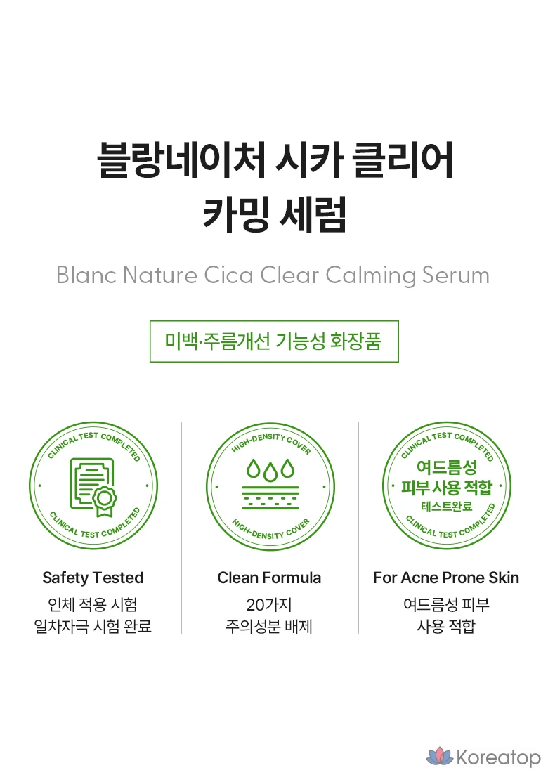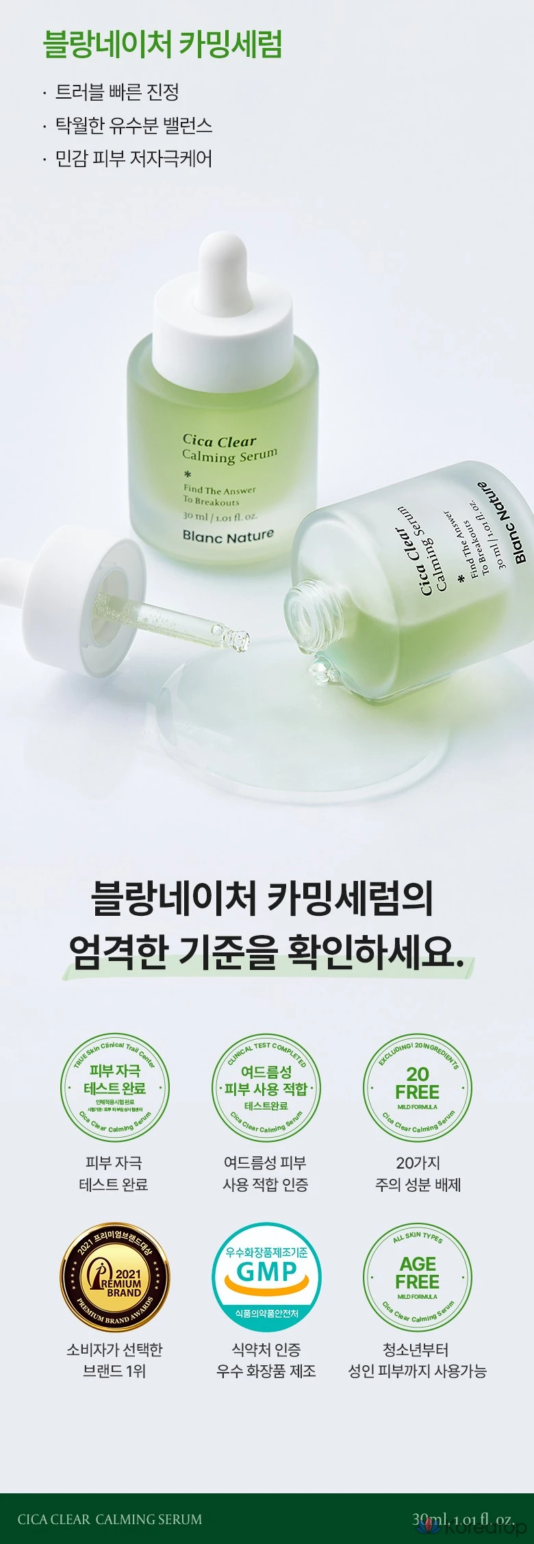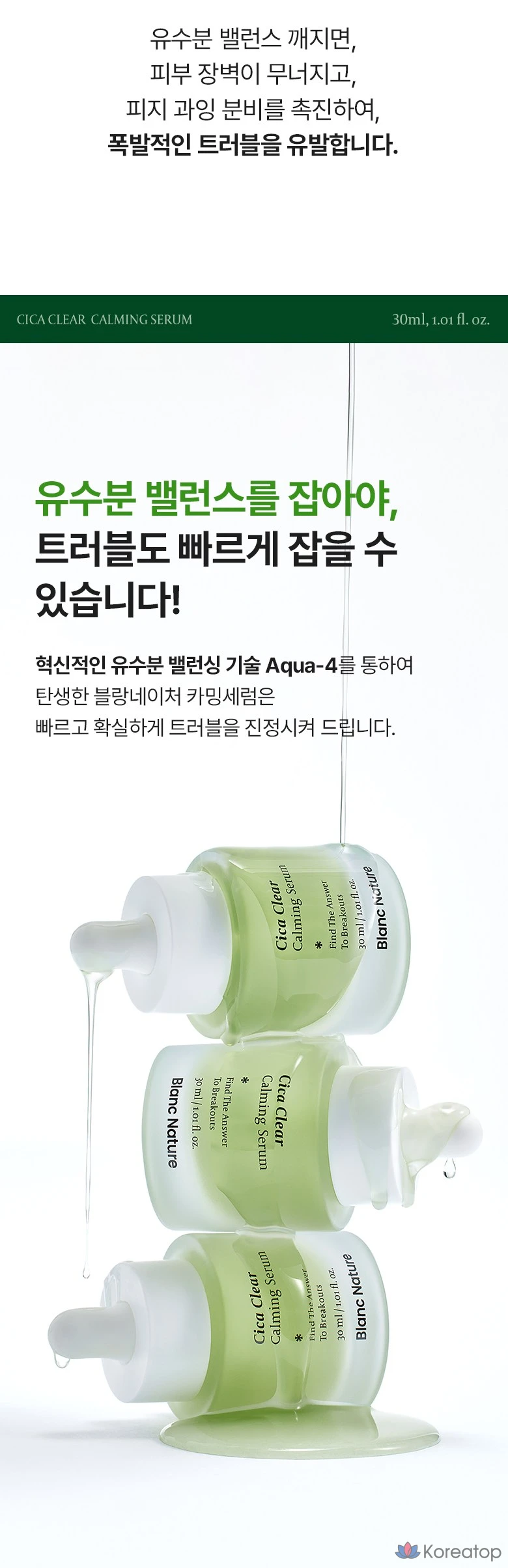 Blanc Nature 3-Second Serum Cica Clear Calming Serum, 30 мл, 1 шт.