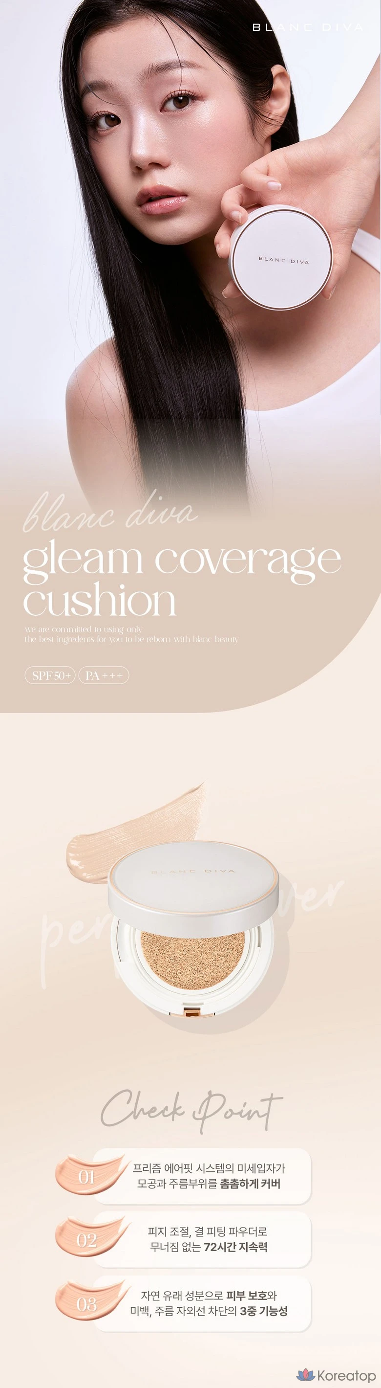 Blandiva Glim Coverage Cushion — тональный кушон с лёгкой текстурой, обеспечивающий среднее покрытие и естественный финиш. Формула с гиалуроновой кислотой увлажняет кожу, а SPF защищает от вредного воздействия солнца. Оттенок 21 подходит для светлой кожи с нейтральным подтоном. Удобный спонж позволяет равномерно нанести средство, создавая гладкий и ровный тон лица.