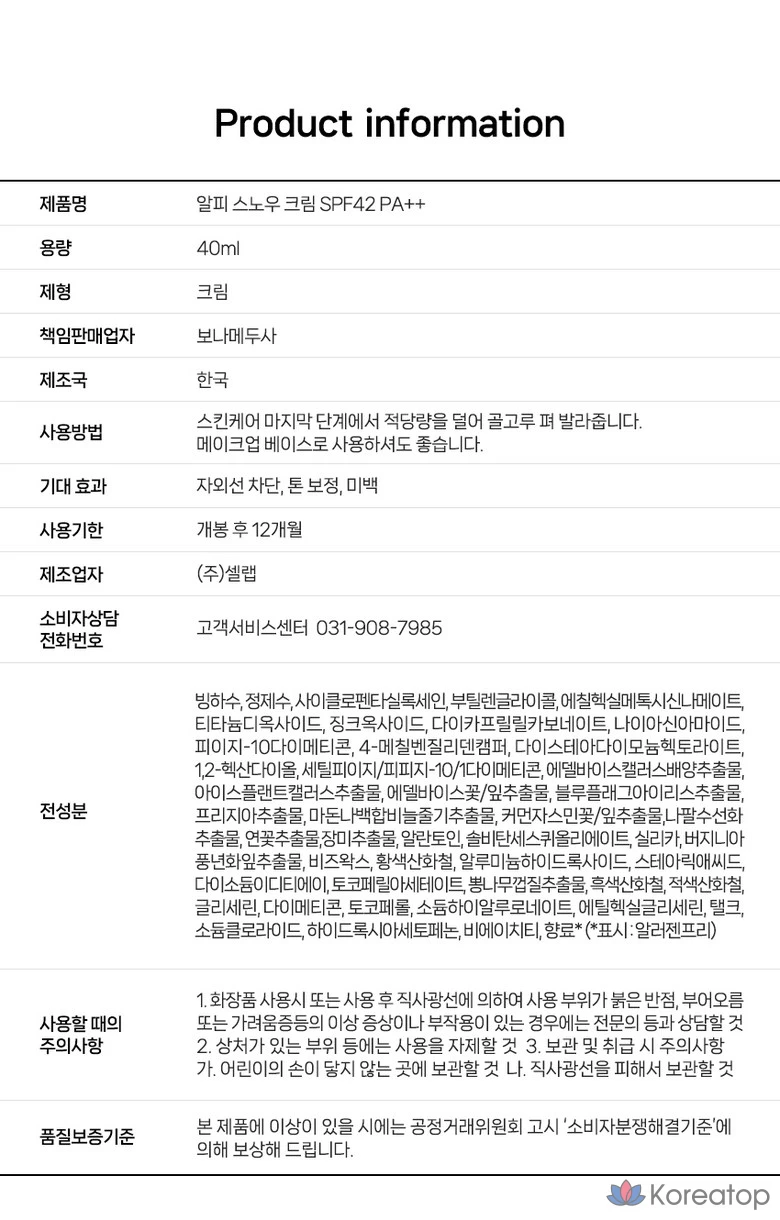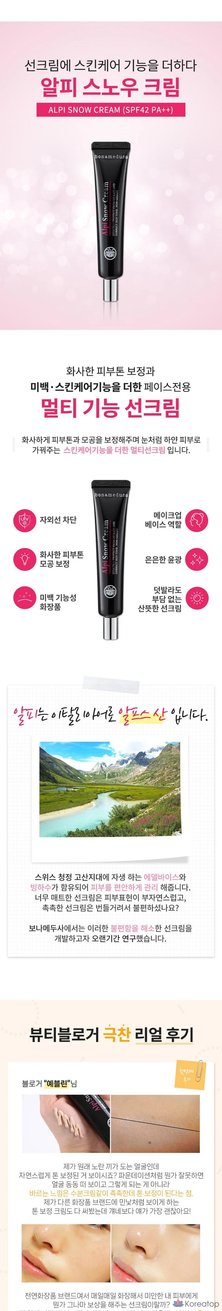Солнцезащитный крем Bonamedusa Alpi Snow Cream SPF42 PA++ с натуральным отбеливающим эффектом, 1 шт., 40 мл
