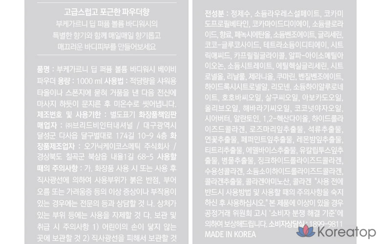 Гель для душа Bouquet garni Deep Perfume Volume с ароматом детской присыпки, 1 л, 1 шт.