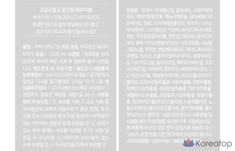 Лосьон для тела Bouquet Garni Deep Perfume Volume Body Lotion с детской присыпкой, 1 л, 1 шт.