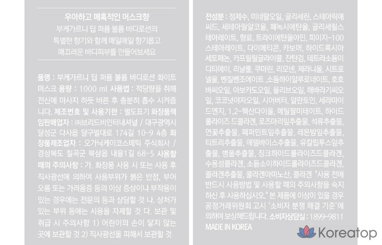 Лосьон для тела Bouquet Garni Deep Perfume Volume Body Lotion White Musk, 1 л, 1 шт.