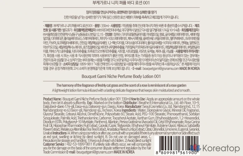 Нишевый парфюмерный лосьон для тела Bouquet garni 001, 330 мл, 1 шт.