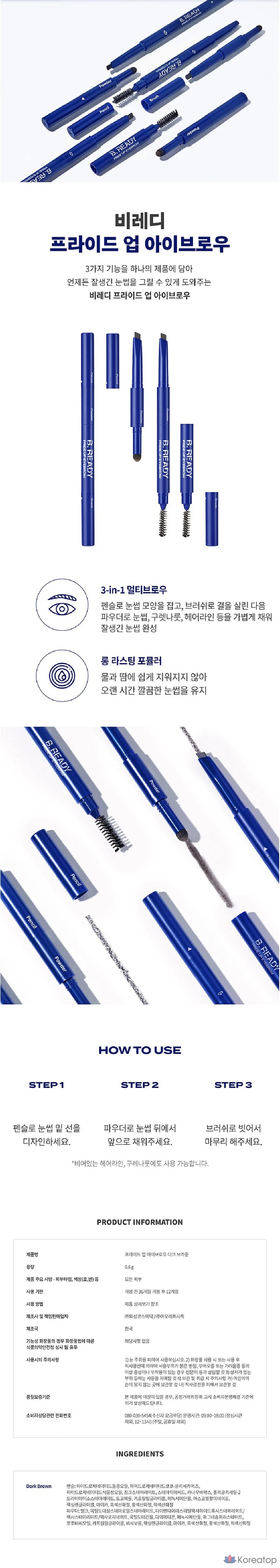 Корректор для бровей B.READY Pride Up, темно-коричневый, 0,6 г, 1 шт.