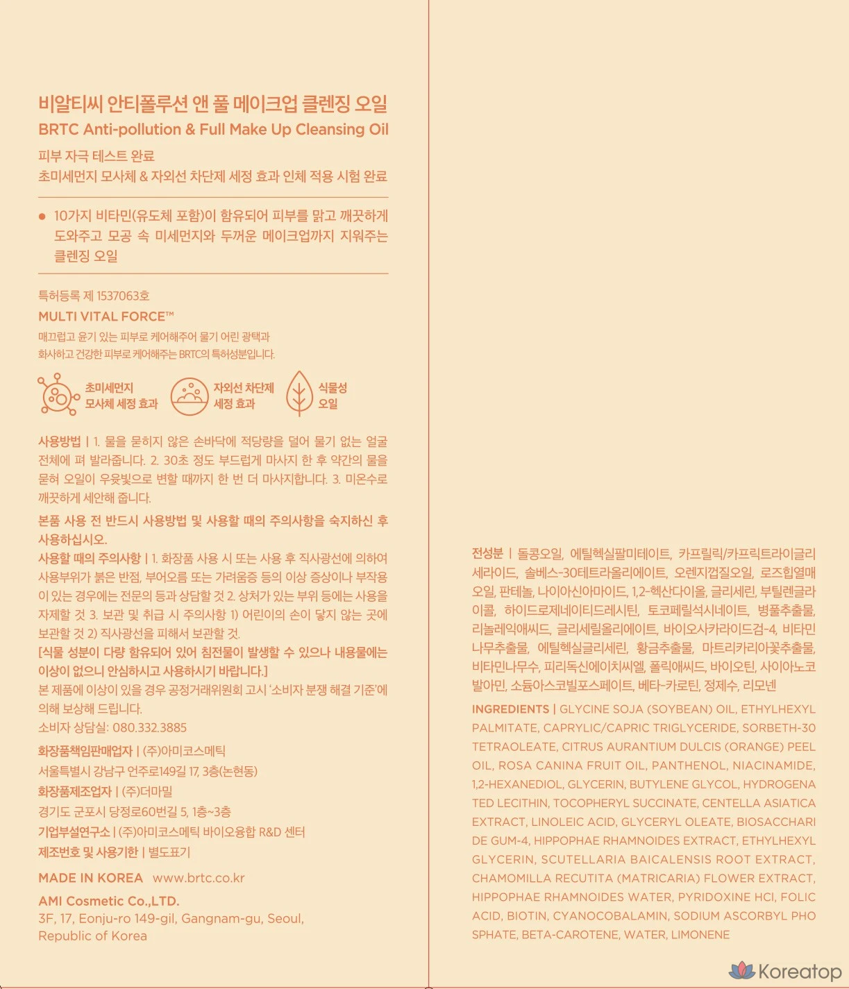 BRTC Масло для очищения кожи от загрязнений и полного снятия макияжа, 1 шт., 300 мл