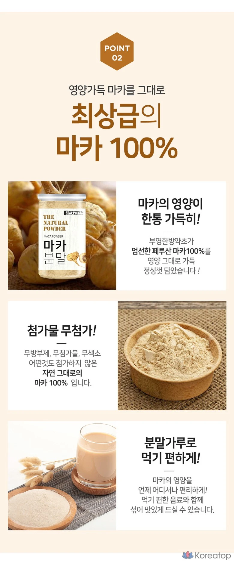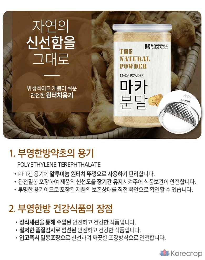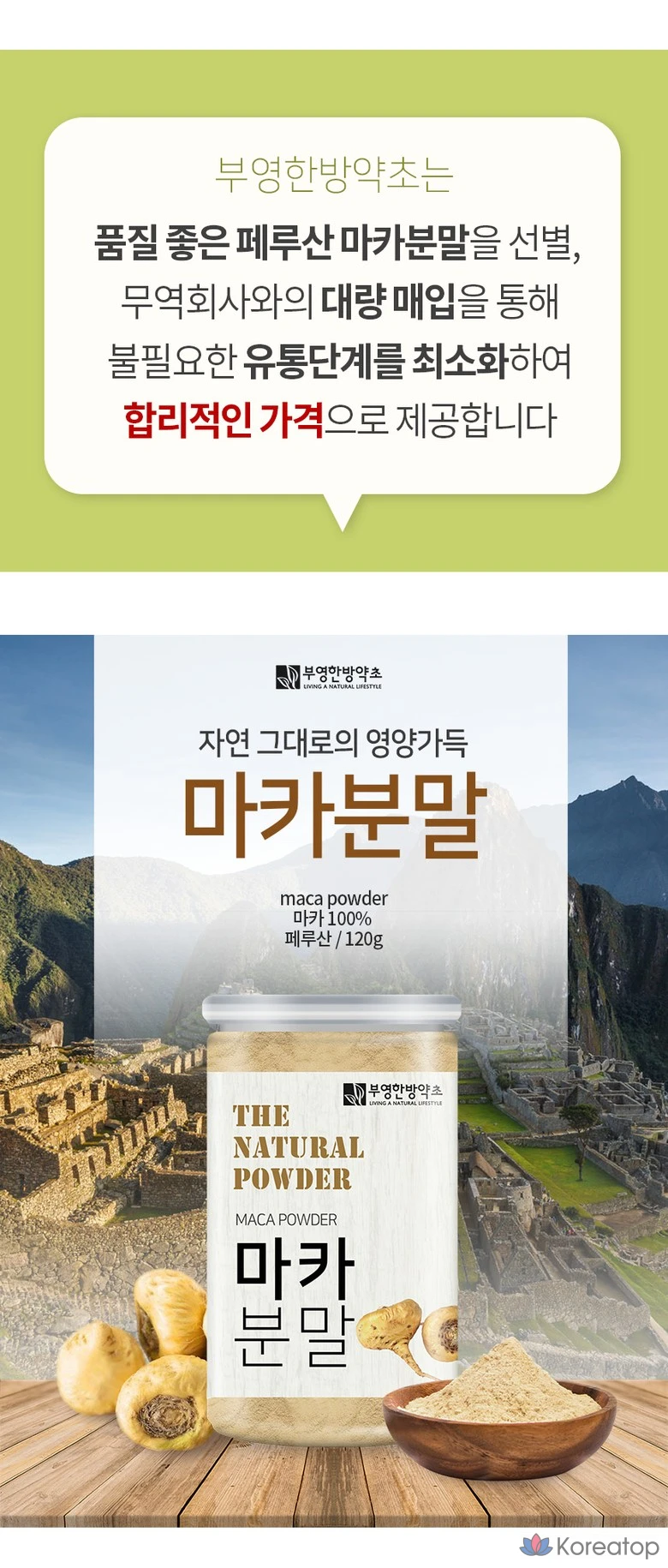 Порошок перуанской маки от Buyeong Oriental Medicine — это натуральный продукт, который помогает поддерживать энергию и жизненные силы. Изготовленный из органических ингредиентов, он идеально подходит для добавления в ваш ежедневный рацион. Удобная упаковка позволяет легко хранить и использовать продукт в любое время. Этот порошок станет отличным дополнением к вашему здоровому образу жизни, поддерживая ваше самочувствие и активность каждый день. 🌿