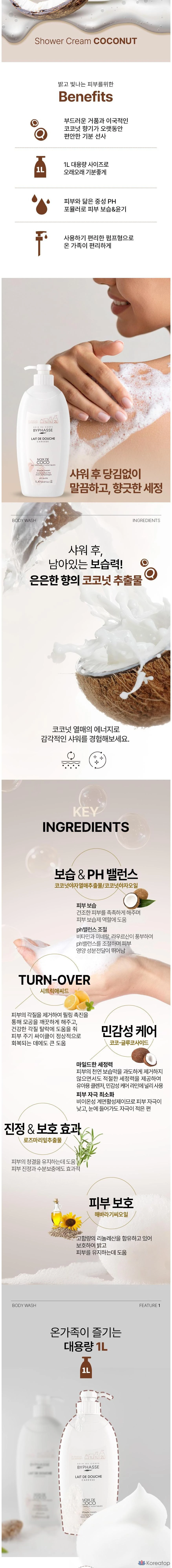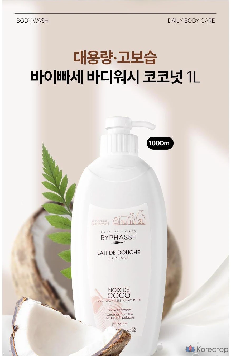 Гель для душа Byphasse Large Capacity High Moisture Body Wash Coconut, 1 л, 1 шт.
