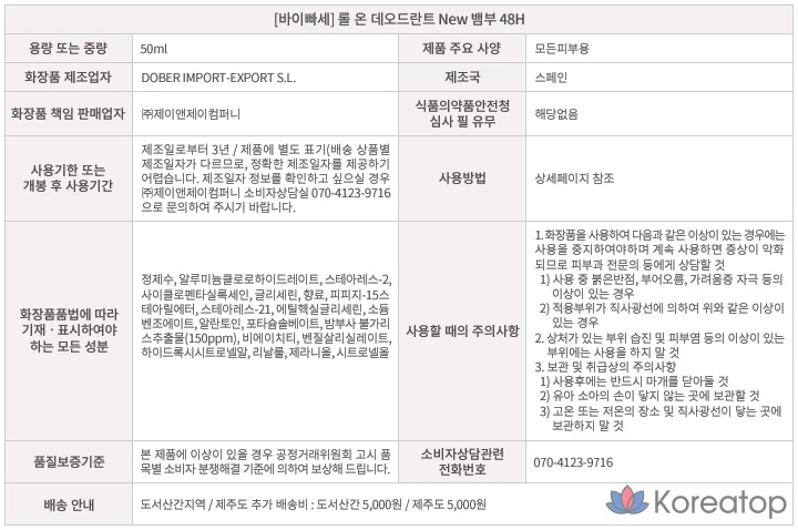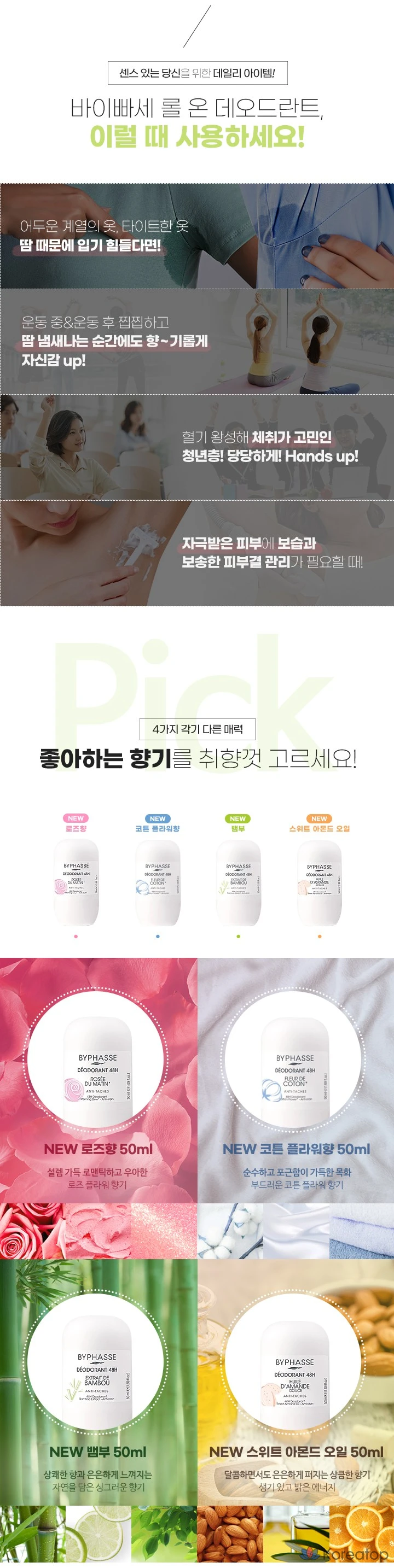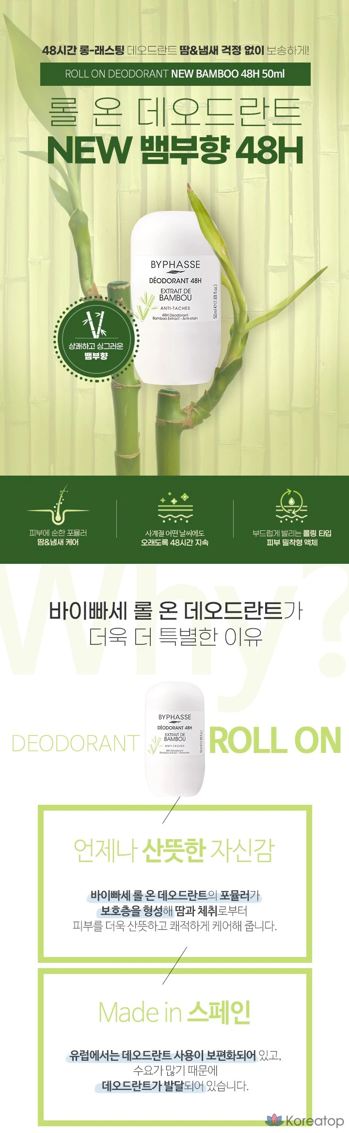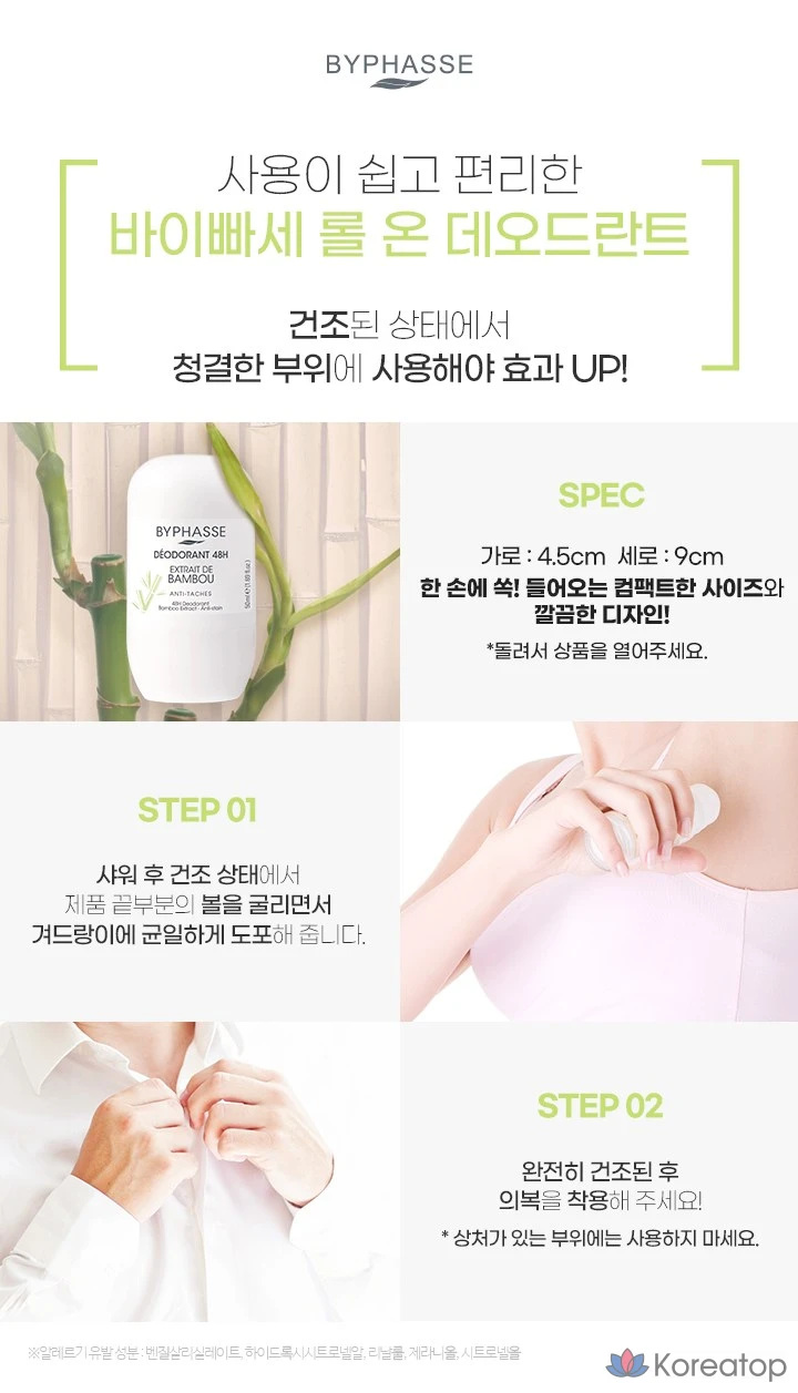 Роликовый дезодорант Byphasse 48H с ароматом бамбука, 50 мл, 1 шт.