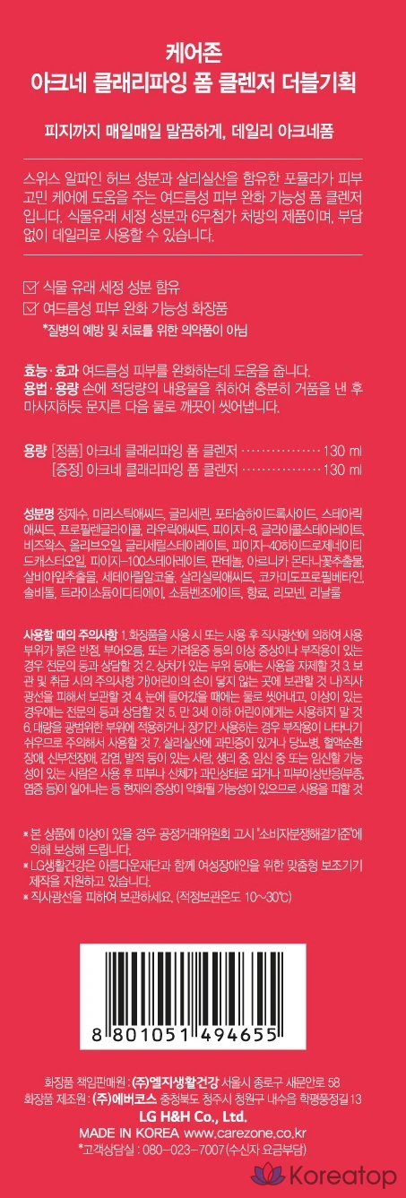 Очищающая пенка для лица Carezone от прыщей, 130 мл, 260 мл, 1 комплект