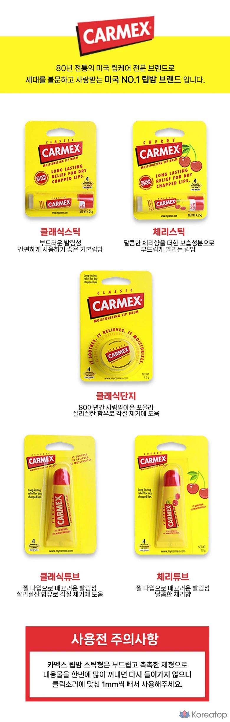 Увлажняющий бальзам для губ Kwangdong Pharmaceutical Carmex, вишневый стик, 4.25 г, Carmex Classic, 7.5 г, 1 комплект