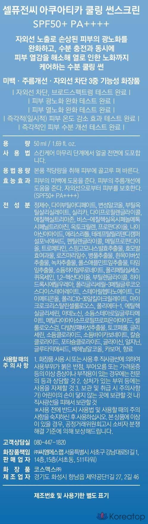 Этот солнцезащитный крем обеспечивает надежную защиту от UVA и UVB лучей благодаря высокому уровню SPF50+ PA++++. Его уникальная формула с охлаждающим эффектом дарит ощущение свежести даже в самые жаркие дни. Водостойкость позволяет использовать крем во время активного отдыха на воде, а натуральные ингредиенты заботятся о здоровье вашей кожи. Увлажняющая текстура легко наносится и быстро впитывается, не оставляя липкости. Идеальный выбор для ежедневного использования в летний период! ☀️