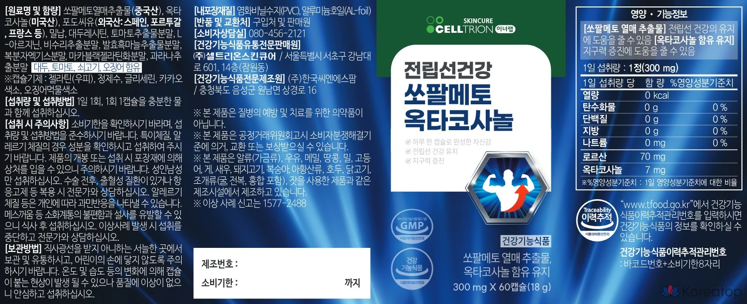 Пищевая добавка для здоровья простаты с пальметто и октакозанолом Celltrion Innerlab
