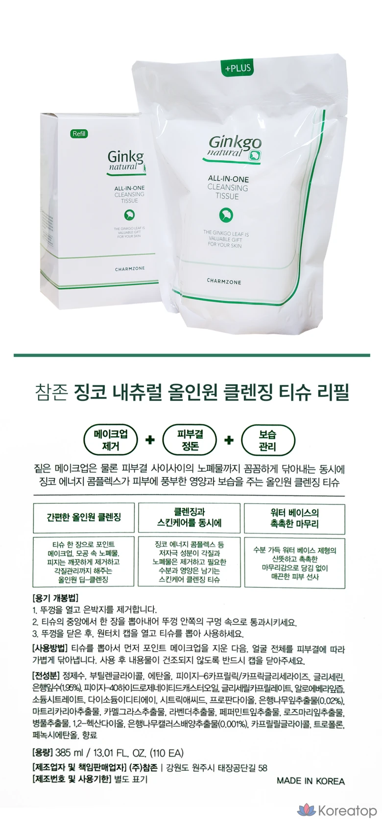 Очищающие салфетки Charmzone Ginkgo Natural All-in-One, 1 шт.