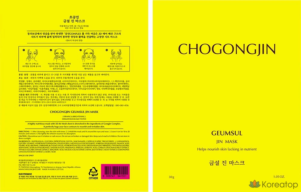Маска Missha Chogongjin Gold Snow Jin, 30 г, 1 шт., 1 упаковка.