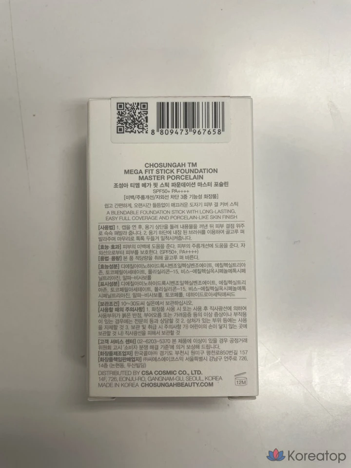 Тональный крем-стик CHOSUNGAH Mega Fit Stick Foundation Master Porcelain SPF50+ PA++++, 16 г, 1 шт., 00C FAIR
