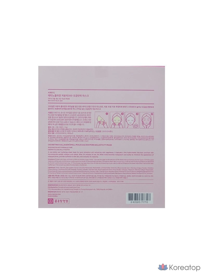 Маска для сужения пор CKD Retino Collagen Low Molecular 300, 1 упаковка (5 штук)