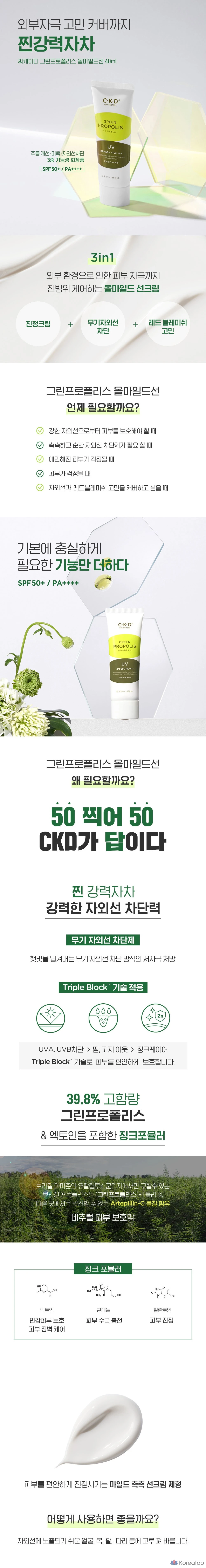 Солнцезащитный крем CKD Green Propolis All Mild Sunscreen SPF50+ PA++++, 1 шт., 40 мл