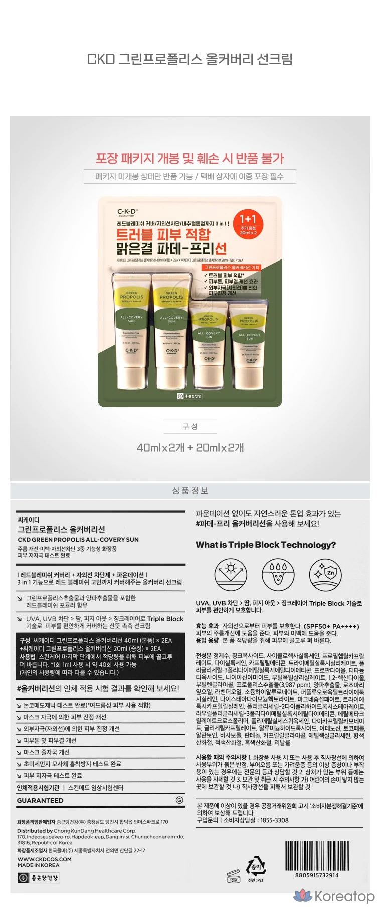 Солнцезащитный крем CKD с зеленым прополисом, 1 шт.