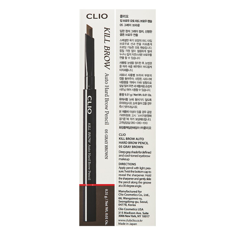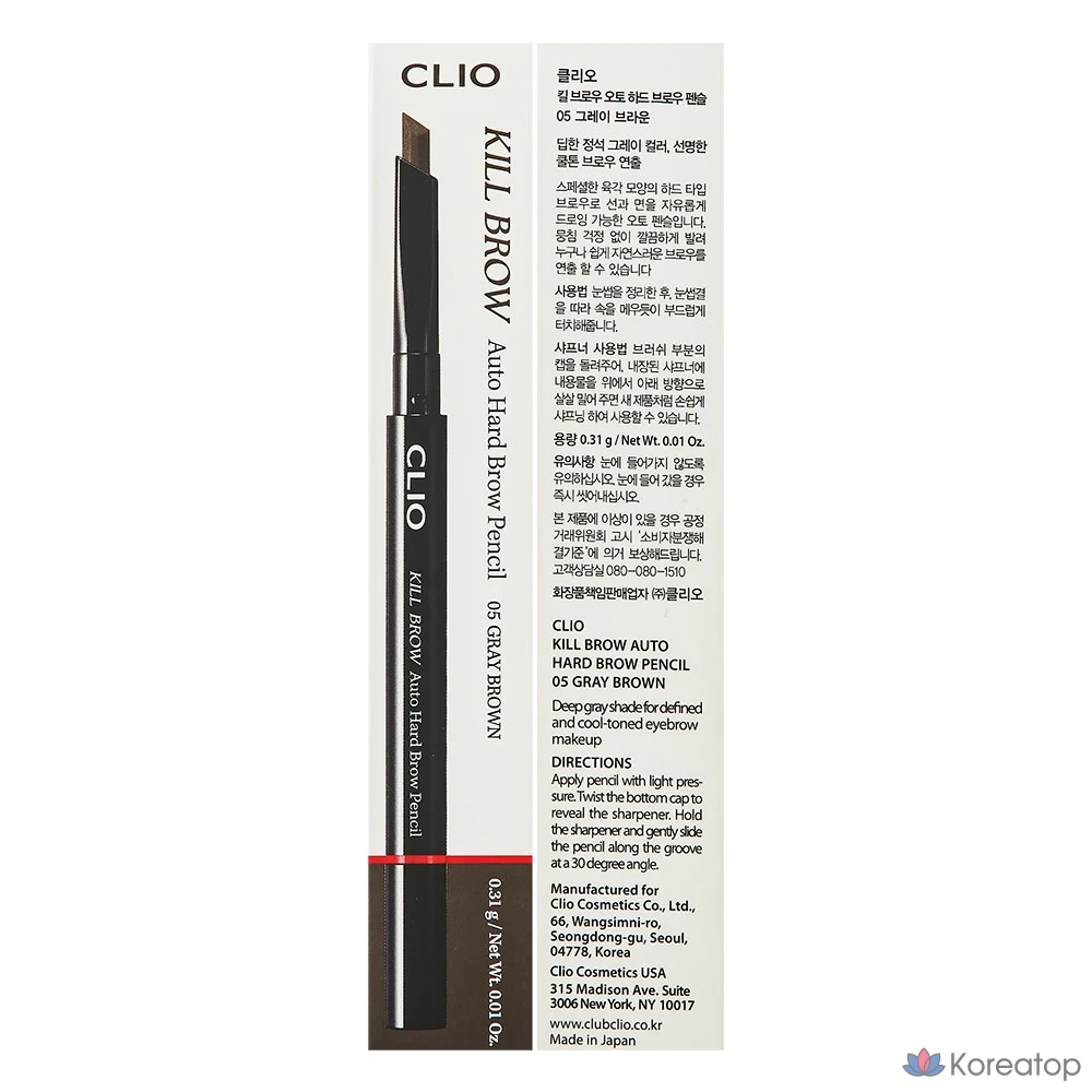 Карандаш для бровей Clio Killbrow Auto Hard Brow Pencil 24AD 0,31 г, цвет 005, серо-коричневый, 1 шт.