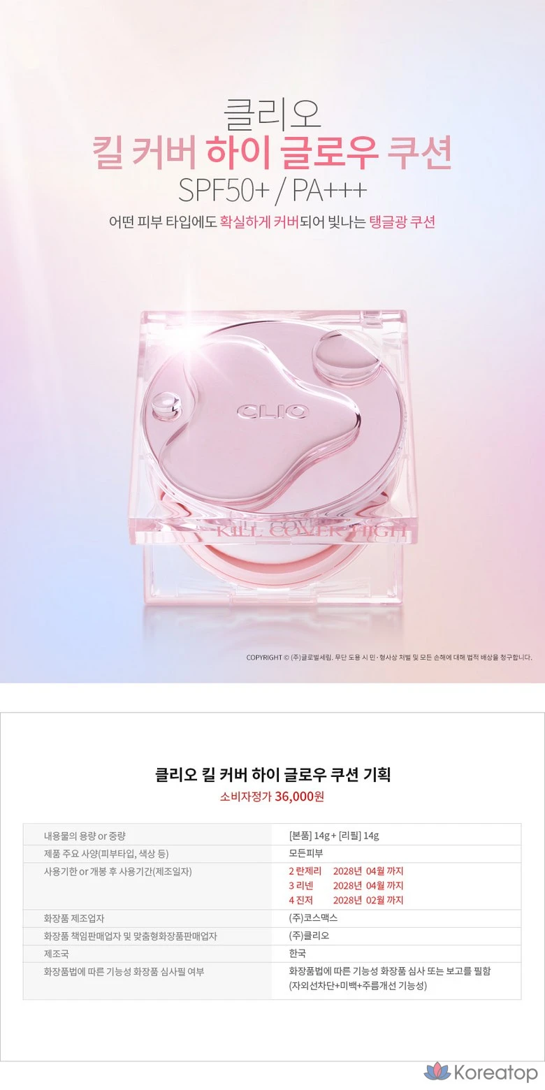 Clio Kill Cover High Glow Cushion Special Set (основной продукт 14 г + сменный блок 14 г), 1 шт., High Glow 2 Lingerie