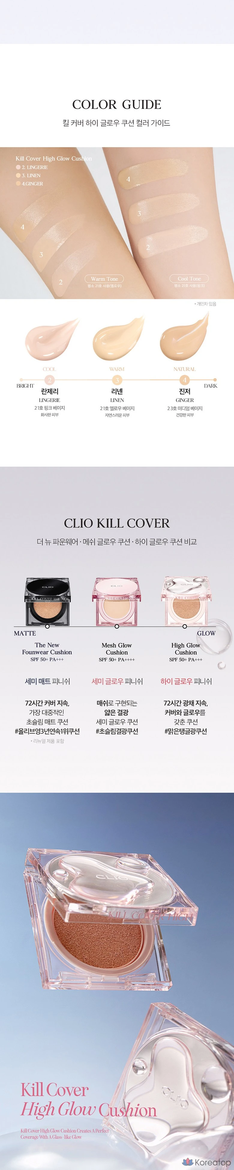 Clio Kill Cover High Glow Cushion, основной продукт, сменный блок, 2 спонжа, 2 предмета, 1 единица.