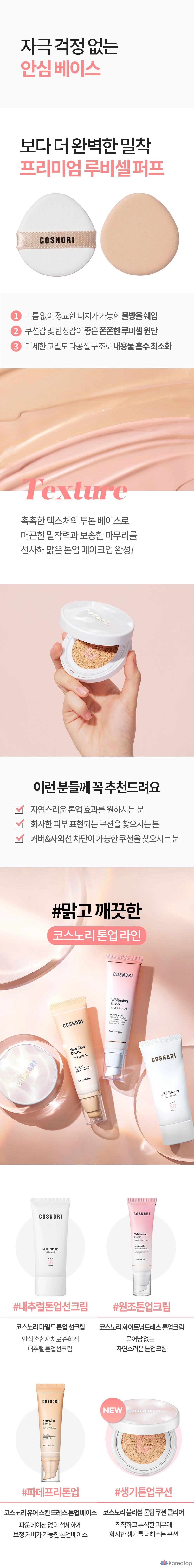 Сменный блок тонального крема Cosnori Blossom Tone-Up Cushion Clear SPF50+ PA++++ 14 г, розово-бежевый, 1 шт.