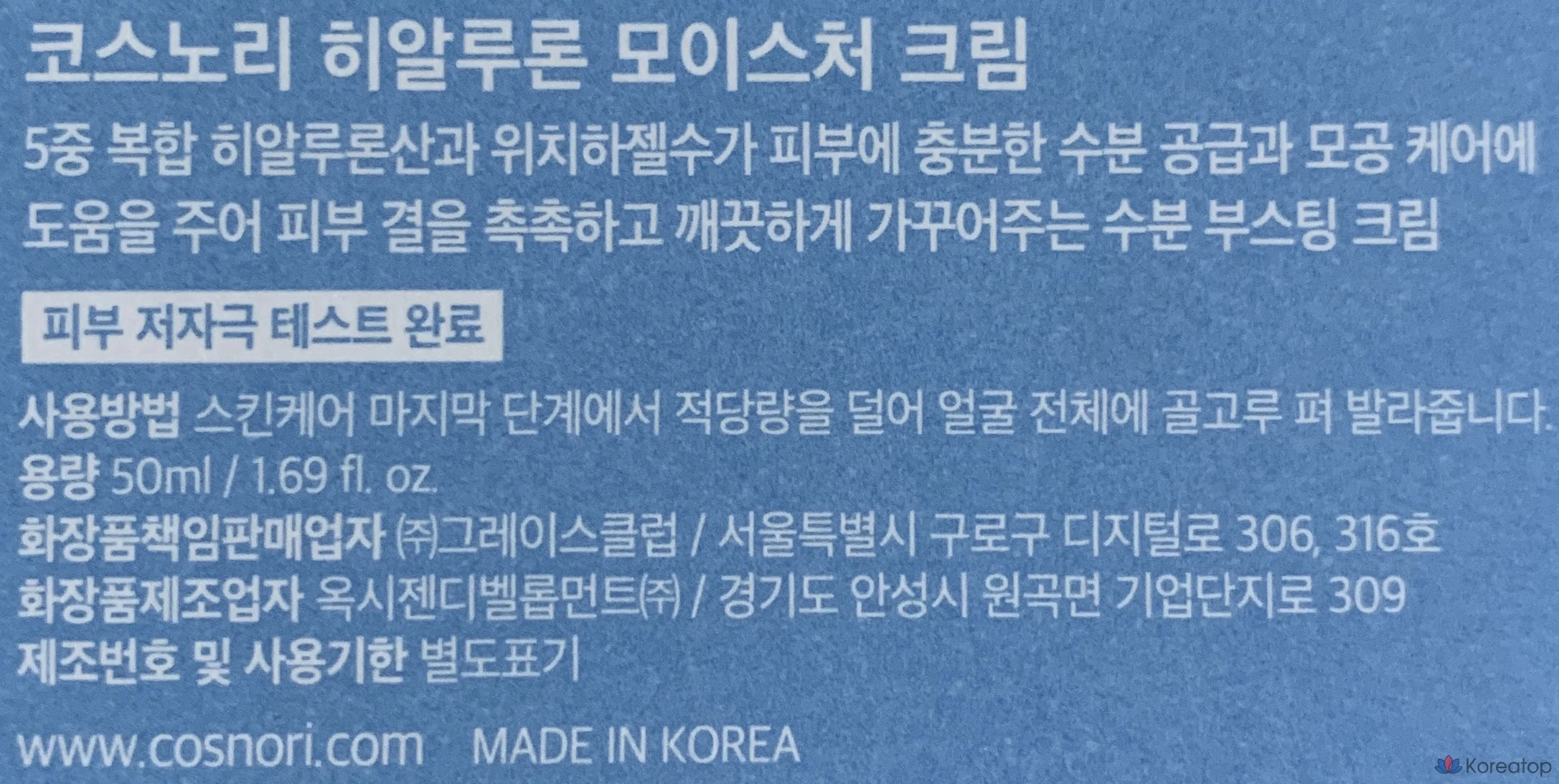 Увлажняющий крем Cosnori с гиалуроновой кислотой, 50 мл, 1 шт.