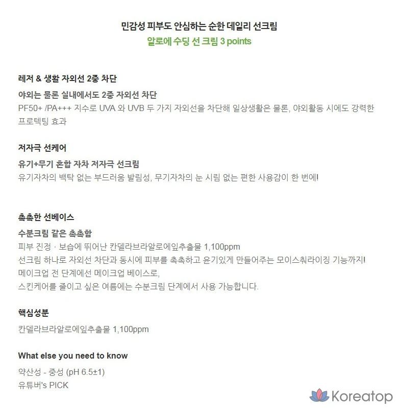 Этот солнцезащитный крем от COSRX обеспечивает надежную защиту от UVA и UVB лучей благодаря SPF50+ и PA+++ фильтрам. Формула с алоэ вера успокаивает и увлажняет кожу, делая её мягкой и гладкой. Легкая текстура быстро впитывается, не оставляя липкости, что делает его идеальным для ежедневного использования. Подходит для всех типов кожи, включая чувствительную, и помогает поддерживать здоровый вид кожи в течение всего дня. 🌞