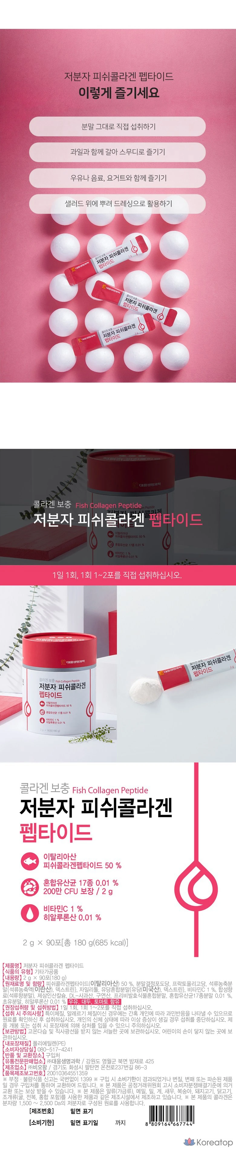 Низкомолекулярный рыбий коллагеновый пептид Daewoong Life Science
