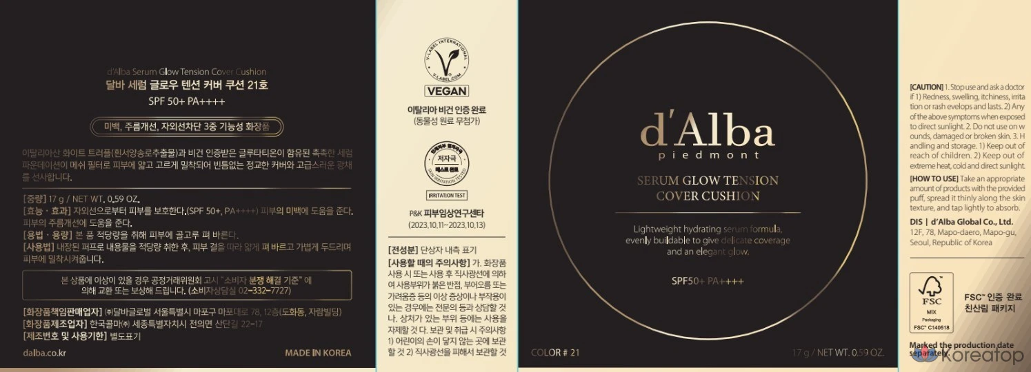 Набор D'alba Serum Glow Tension Cover Cushion 17 г + сменный блок 17 г, № 23, 1 шт.