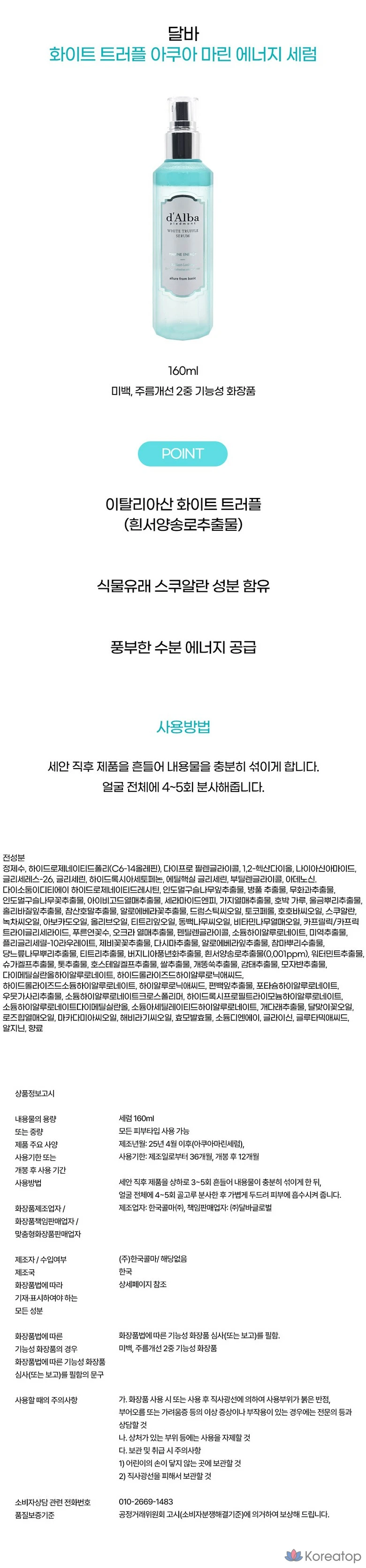 Сыворотка для тела D'alba White Truffle Aqua Marine Energy Serum, 160 мл, 1 флакон, 160 г