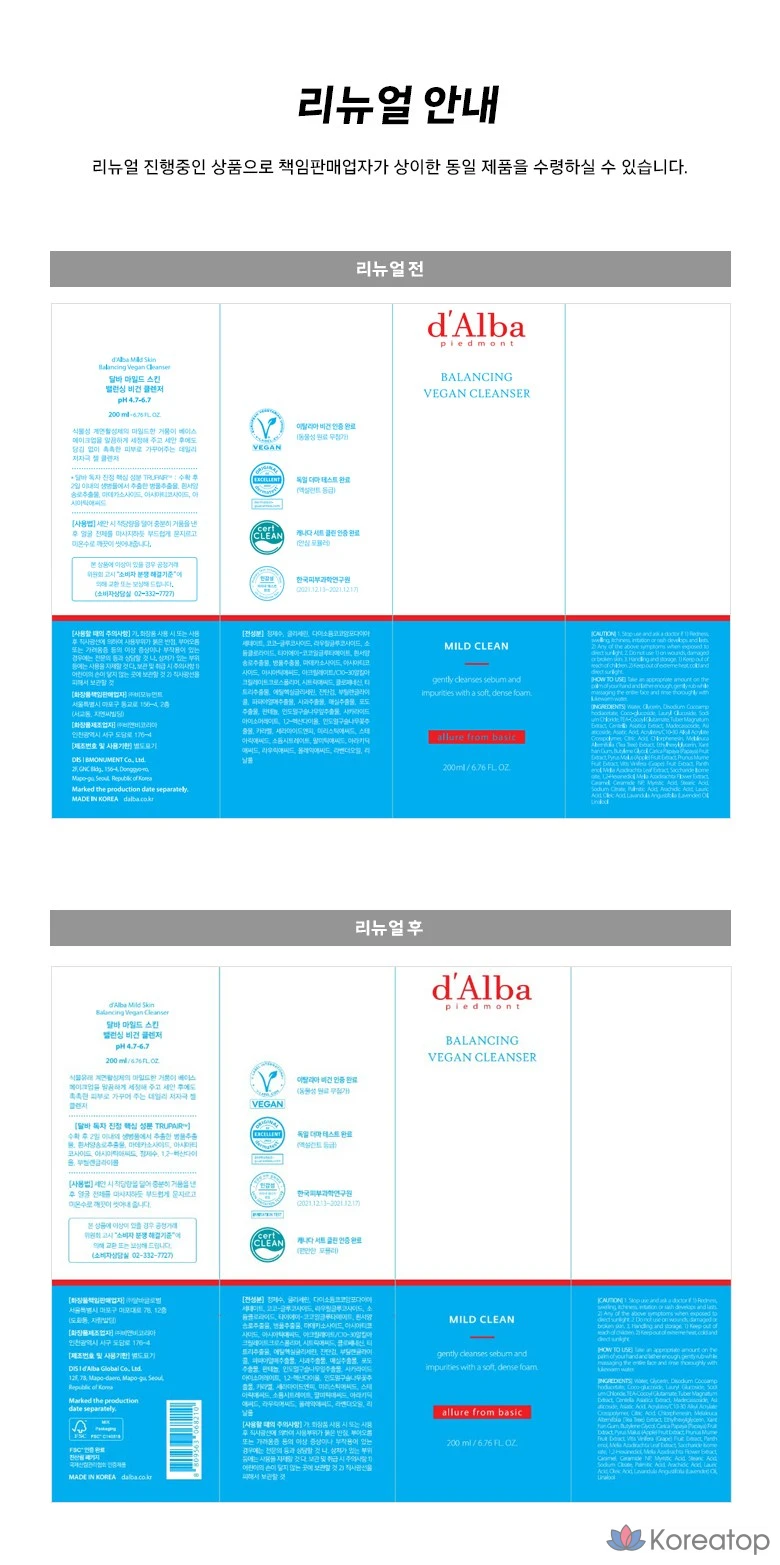 Очищающее средство для лица D'alba Mild Skin Balancing Vegan Cleanser, 200 мл, 1 шт.